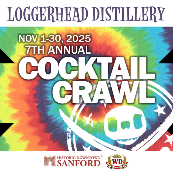 Want to try the best spirits in the best cocktails made by the best bartenders in Sanford? Now's your chance! Starting November 1st and running the whole month, 16 bars and restaurants in greater Sanford will be creating an array of fantastic cocktails for you to enjoy. Visit them all, get your cocktail crawl card punched, and return it to Loggerhead Distillery by November 30th for shirts, discounts, and prizes!